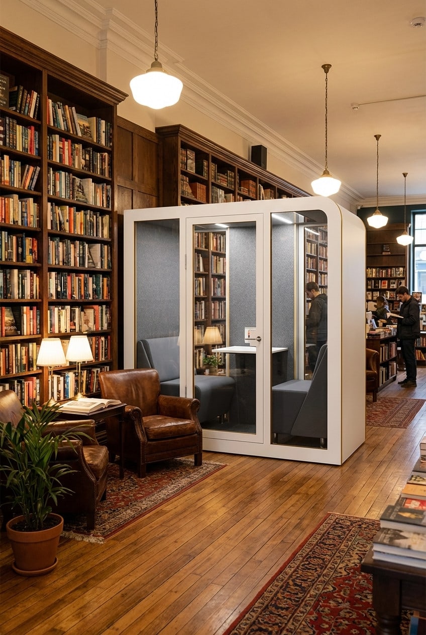 Pour les usages qui exigent un isolement complet — appels confidentiels, visioconférences, travail de concentration prolongé — les cabines acoustiques individuelles ou collectives constituent la solution la plus efficace. Nous aidons nos clients à choisir le bon modèle, à dimensionner le nombre de cabines nécessaires et à les implanter de manière optimale.